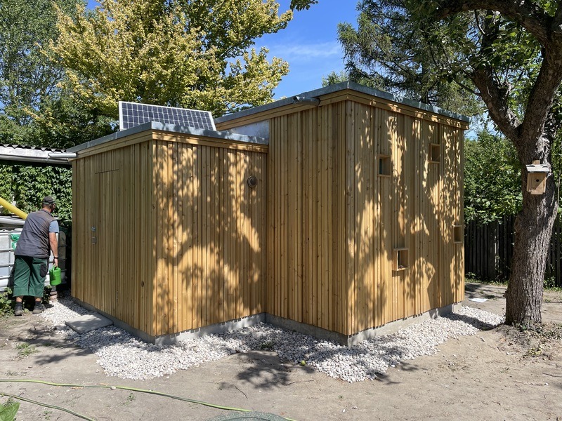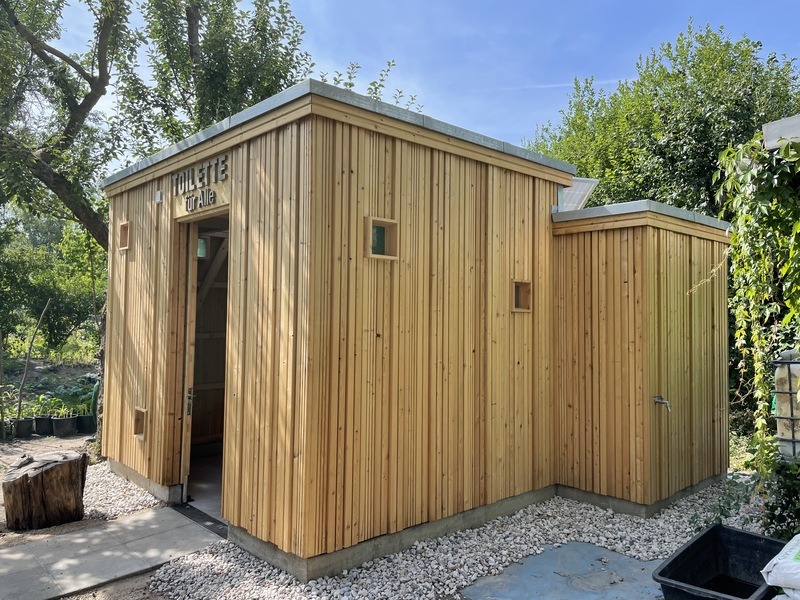 Toilettenraum mit Sondermaßen konzipiert für den Salvia Garten. Innenfläche des Toilettenraums: 304 cm Breite x 235 cm Tiefe.