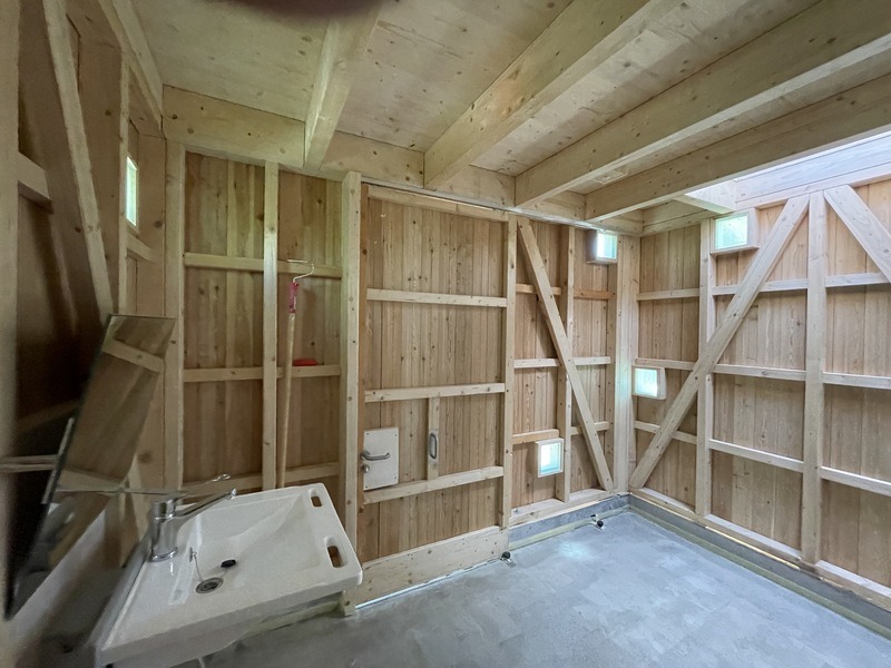 Der Toilettenraum erhält durch offengelassene Strukturen eine besondere, gemütliche Ästhetik.