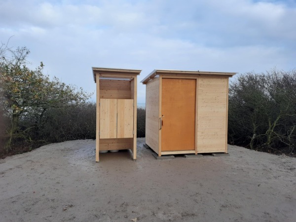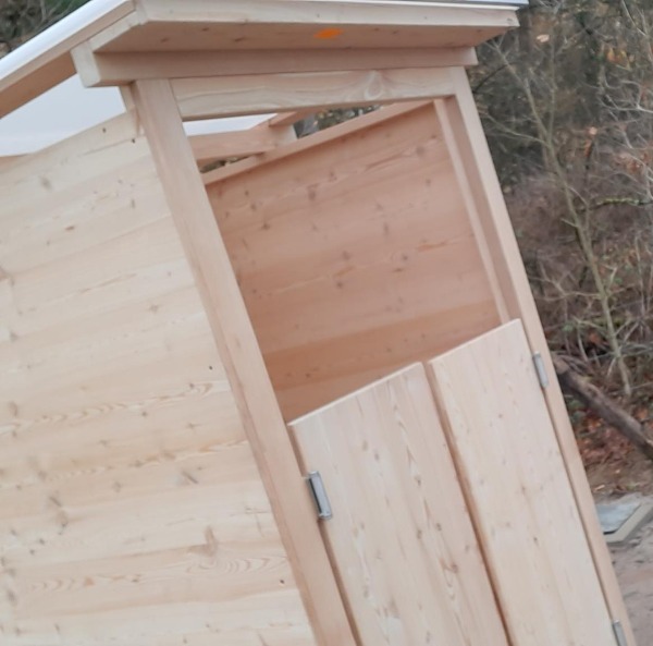 Es kam schon vor, dass Vögel das Toilettenhäuschen als Obdach für Ihr Nest benutzt haben 😊. Wir bieten optional eine Vogelschutzblende aus Holz mit Belüftungsspalte.