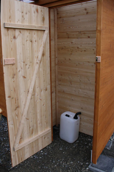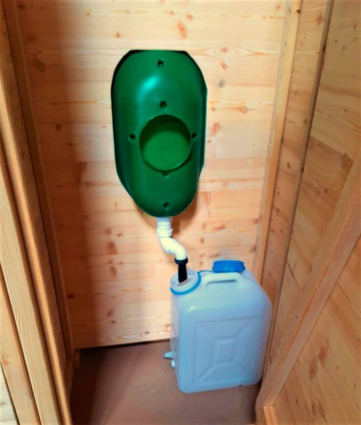 Der Urinkanister im Lagerraum muss ggf. leicht in den Boden vertieft werden, damit der Anschluss mit Schlauch an das Urinal gut passt.