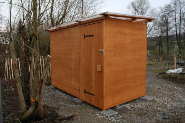 - Dach aus lichtdurchlässigen Doppelstegplatten und Holz