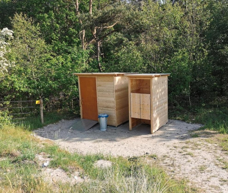 Das wasserlose Pissoir WALD mit Häuschen besteht aus einem Trockenurinal, ohne Wasser oder Chemie betrieben, und einem zugehörigen Lagerraum.Das Trockenurinal gibt es für Frauen (Hock-Urinal) oder für Männer (Steh-Urinal).